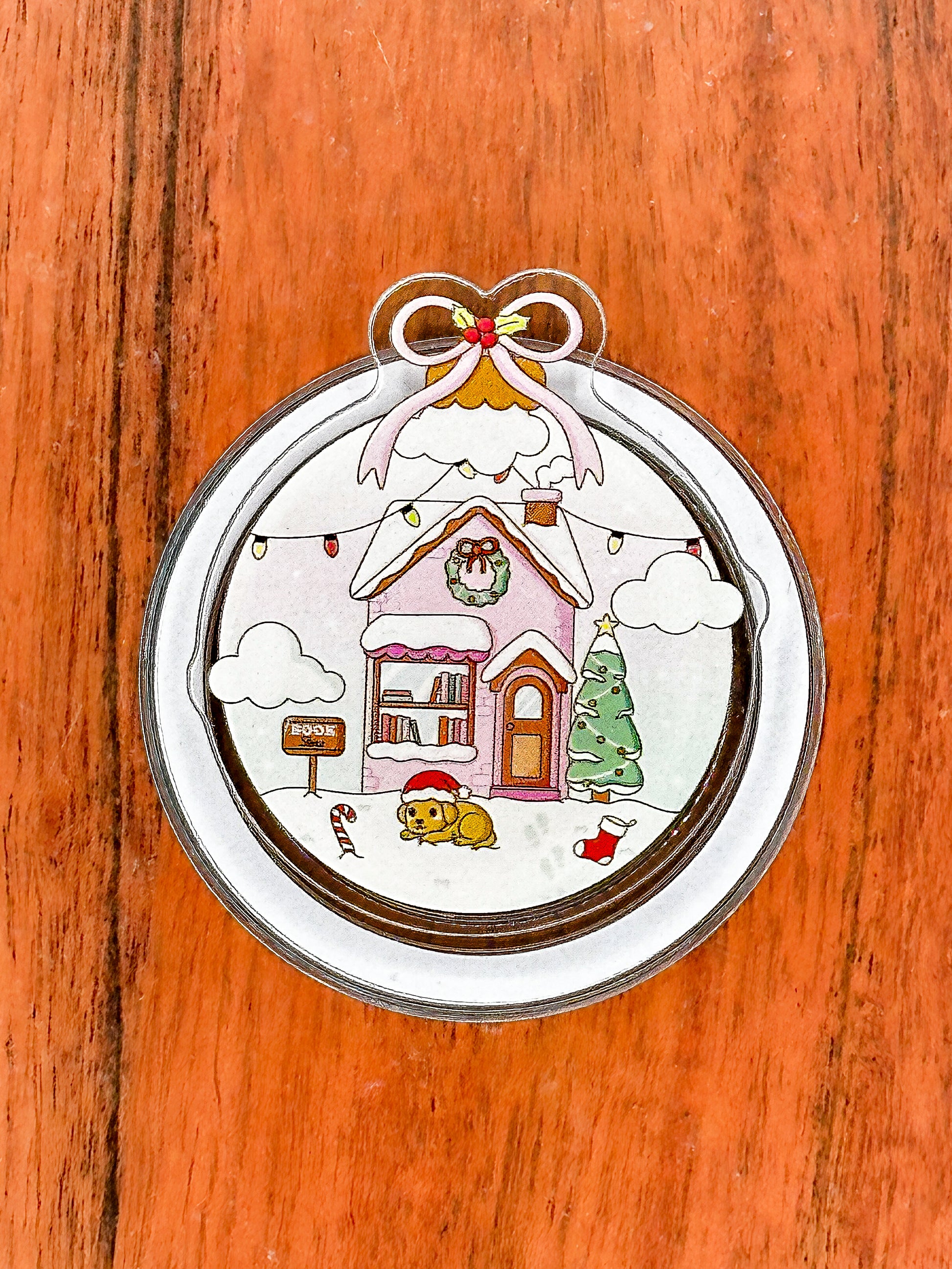 🎄 Features an illustrated snowy bookstore scene with Christmas décor and cozy details