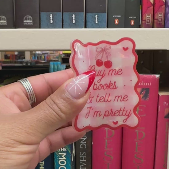 This adorable claw clip features a blush-pink, scalloped design with the iconic phrase “Buy me books & tell me I’m pretty”—because standards matter 📚✨ Perfect for reader girlies, bookstore dates, and cozy reading marathons.