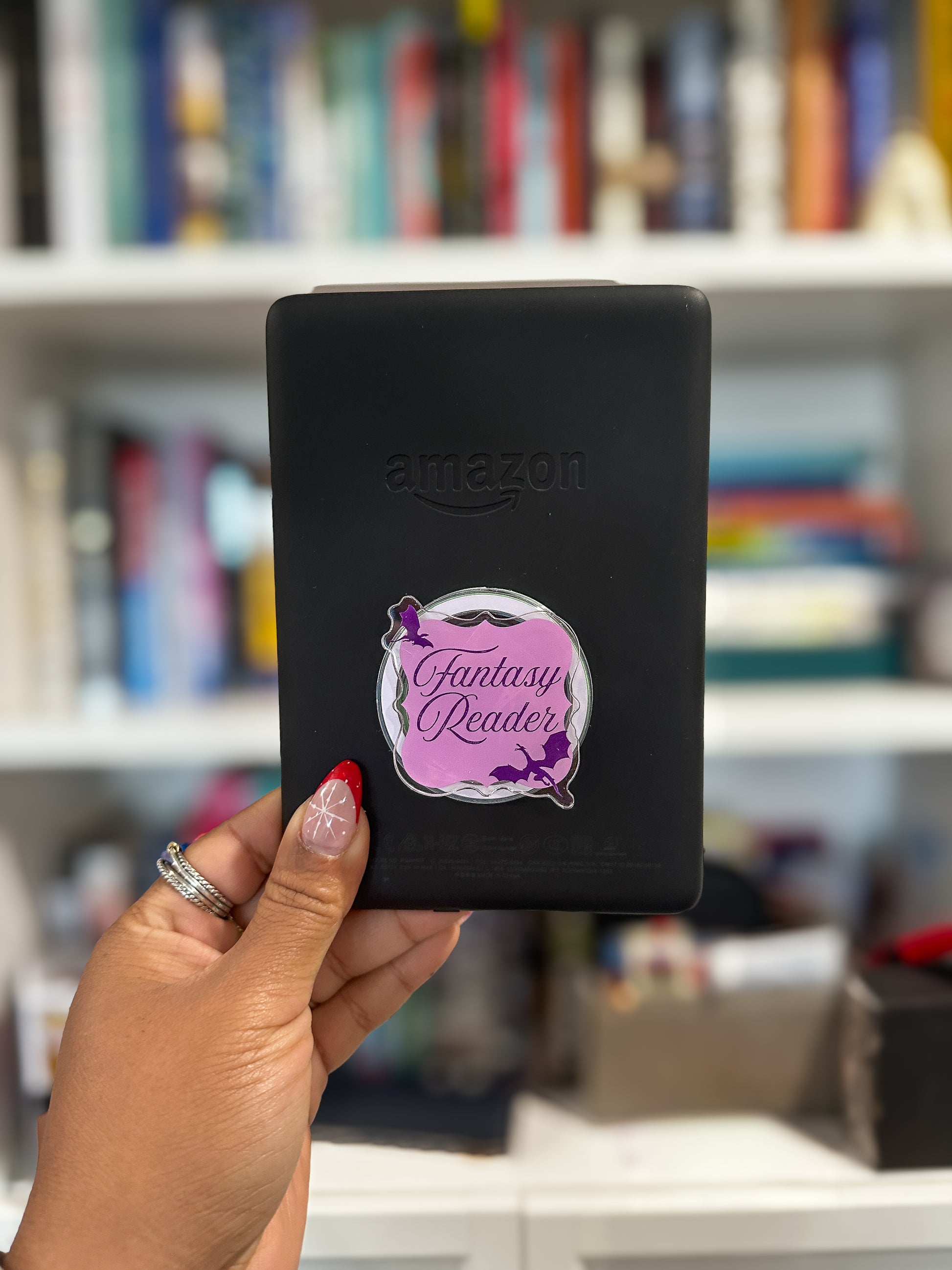 This magnetic grip features a dreamy purple Fantasy Reader Dragon design accented with mystical details, making it the perfect accessory for fantasy lovers who always have just one more chapter left. Whether you’re gripping your Kindle during an epic quest, scrolling fan art, or rereading your favorite fantasy comfort series, this grip is here for the journey.