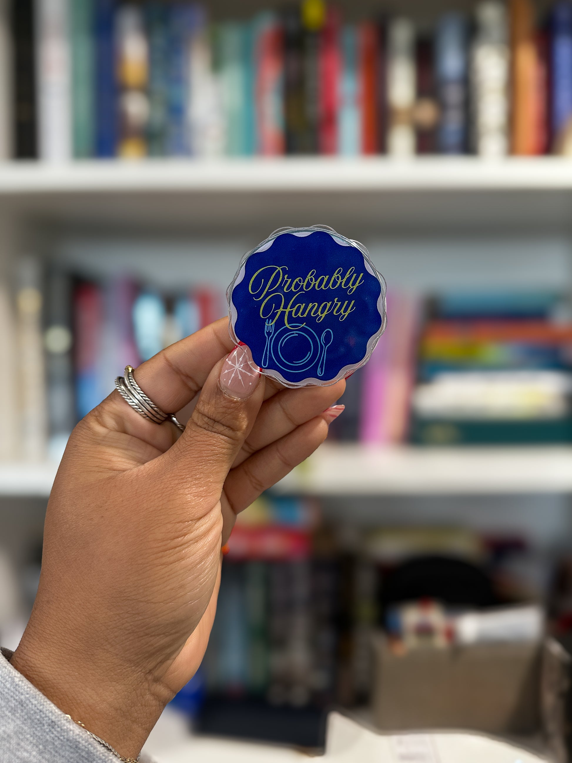 This magnetic grip features a deep blue Probably Hangry design with a subtle plate-and-cutlery motif, making it the perfect accessory for y'all whose moods are directly tied to snack availability. Whether you’re reading through dinner plans, scrolling food content, or holding your Kindle while negotiating “one more chapter then I’ll eat,” this grip understands you.
